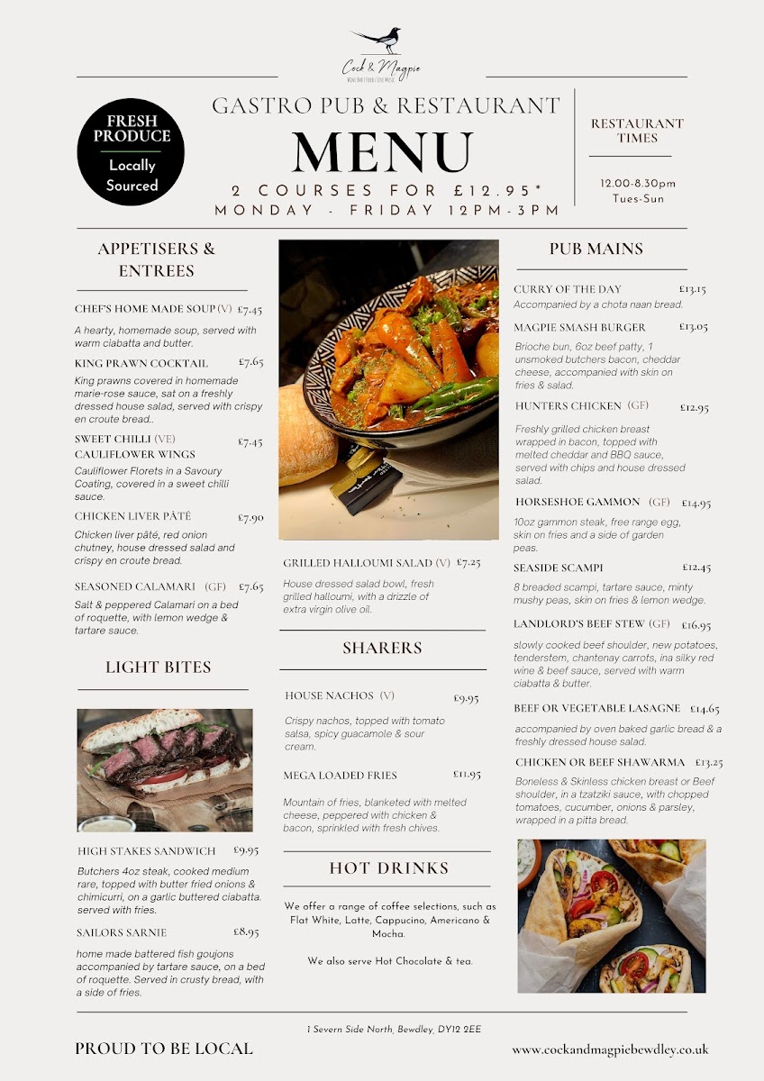 The menu at Cock and Magpie offers a warm and inviting selection that mirrors its riverside pub atmosphere. You’ll find a variety of comforting dishes that suit a relaxed lunch or a leisurely evening, with options ranging from classic pub mains to hearty steak dishes.